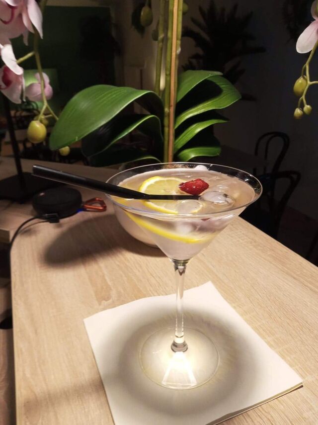 Zielona Żaba Mało słodki drink na bazie soku z mięty i z miętą w lisciach na toniku???